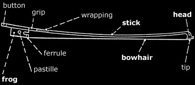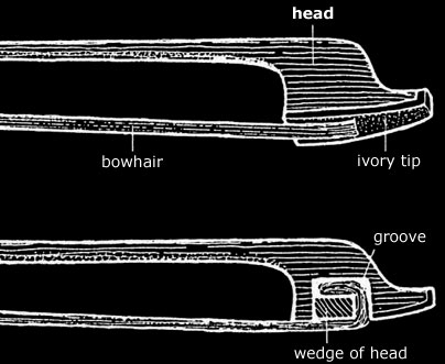 horsehairs fixed to the head in a groove and to the nut in a movable