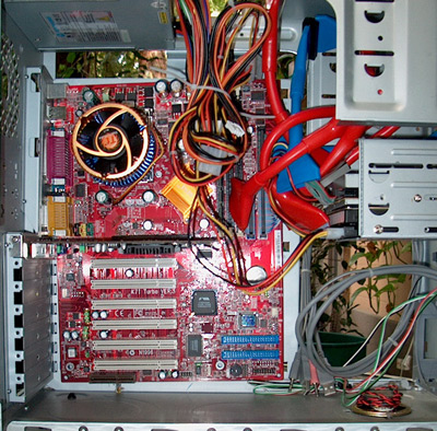 The first thing to do before installing the system cables is to establish which plugs go where and the way the cables attach to the drives. There is usually a little tab that sticks out of the IDE cable telling you the correct direction the cable installs. If your cable does not have the tab look for the red wire on the cable that signifies it as pin one.