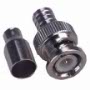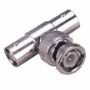 BNC connector for coaxial cables. These are either soldered, or crimped to the end of the cable. BNC T connector, which joins the network card to the network cable.