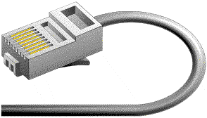 RJ-45 connectors are used with 10-100BaseT cables. These resemble telephone RJ-11 connectors, but are larger and house 8 wires while RJ-11 house 4 or 6 wires. They are connected to the cable by crimping.