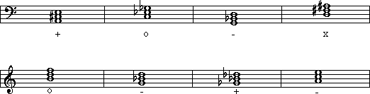 f) A leading tone triad in B-flat