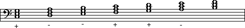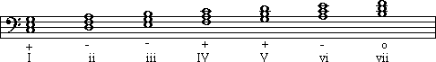 of each triad by placing a "+" for major, "-" for minor, "o" for diminished,