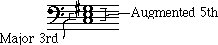 Outside interval is an Augmented 5th; bottom interval is a Major 3rd. |
