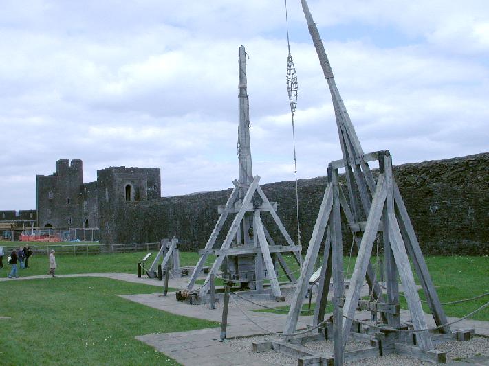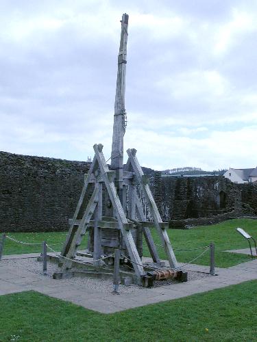 Attack was assisted by a variety of "engines" which threw missiles, usually stones, into the castle. They made use of tension, as in a bow, of torsion and of counterpoise. Most had been used in classical times. All were used in the Middle Ages to beat down walls and crush buildings and also defended against all that approached their walls too closely. The term ballista usually denoted a great crossbow operated by the tension of the bow; the springal relied on the tension of a bent beam of wood, and the mangonel on the torsion of tightly twisted rope. Only one engine was the invention of the Middle Ages, the trebuchet. It relied on a counterpoise and was simpler in design and construction than most others. Prince Louis of France is credited with bringing it to England in 1216. Various engines were constructed in the king's North Wales castles of Deganwy and Dyserth, where four "switches" were built for catapults and mangonels. It was usual to drag these machines around the country as need arose.