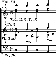 given to Violin I, and stems down to Violin II. The viola (an instrument