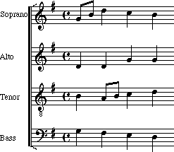 with the stems downward are to be sung or played by the bass voice(s) (or